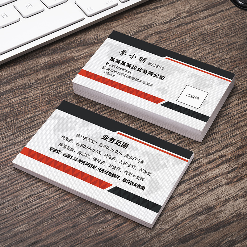 看了以上的介绍,相信大家对名片的价格有了一定的了解,当然,除了上面的三种名片,还有许多其他特殊的名片,比如金属、绢丝、木头等特殊材质的,这里就暂时不做一一介绍了。商业名片:为公司或企业进行业务活动中使用的名片,名片使用大多以营利为目的。商业名片的主要特点为:名片常使用标志、注册商标、印有企业业务范围,大公司有统一的名片印刷格式,使用较高档纸张,名片没有私人家庭信息,主要用于商业活动。企业物料印刷找我们!