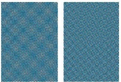 在某些网屏角度叠印的情况下,这种网纹在细网线加网的条件下还可为视觉接受。但以另一些网屏角度叠印的情况下,就会和其他颜色产生冲突,将会产生非常难看的大块网纹,这种现象就是印刷撞网,也就是通常所说的网花,这些非常难看的大块网纹应该尽量避免。这种网纹称为莫尔条纹或龟纹。