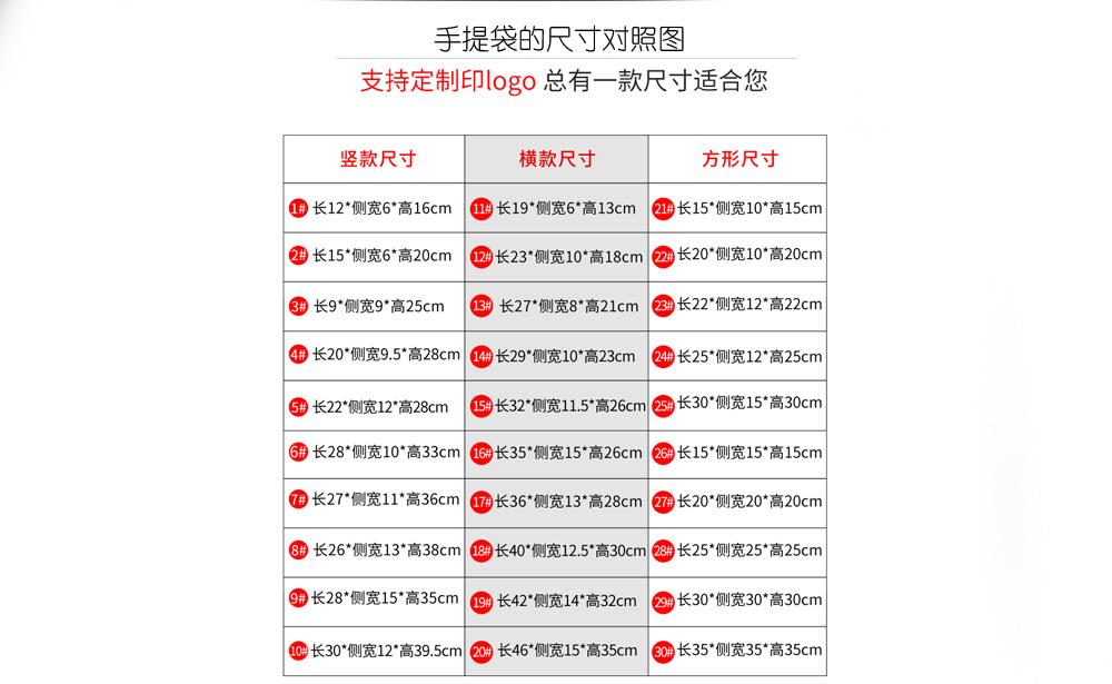 手提袋常用尺寸对照图