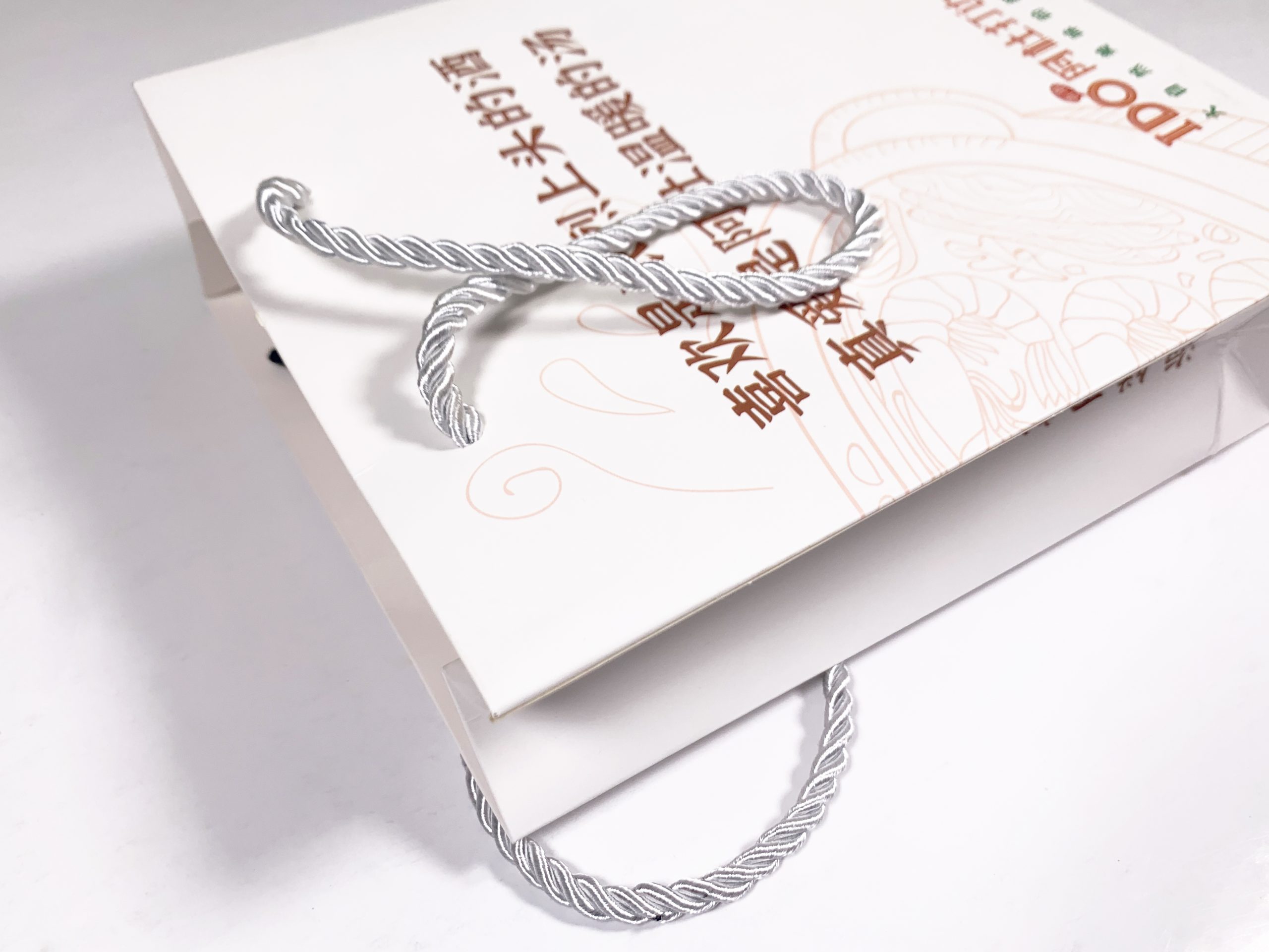 材质:250g白卡 哑膜 银色三股绳