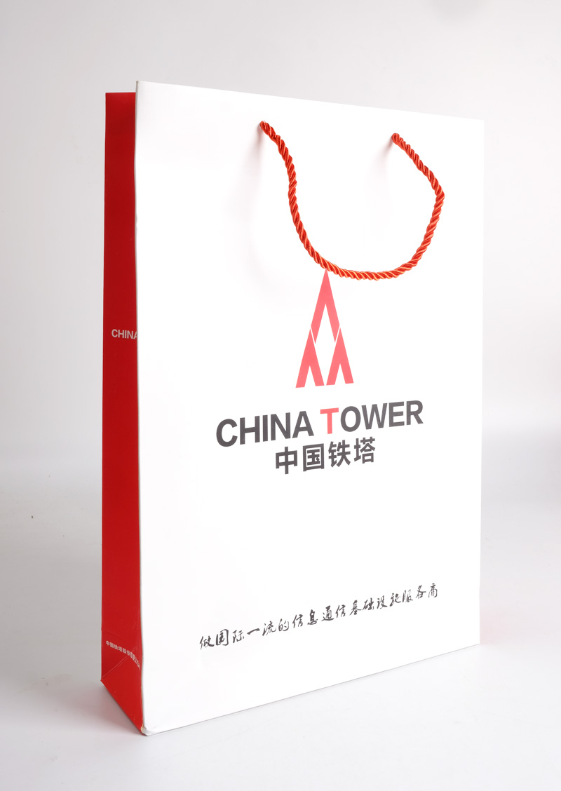 简述: 央企中国铁塔股份有限公司办公物料,企业必备常用产品 类型:手提袋、纸杯 工艺材质:手提袋250克白卡覆亚膜+三股绳 9盎司企业专用纸杯