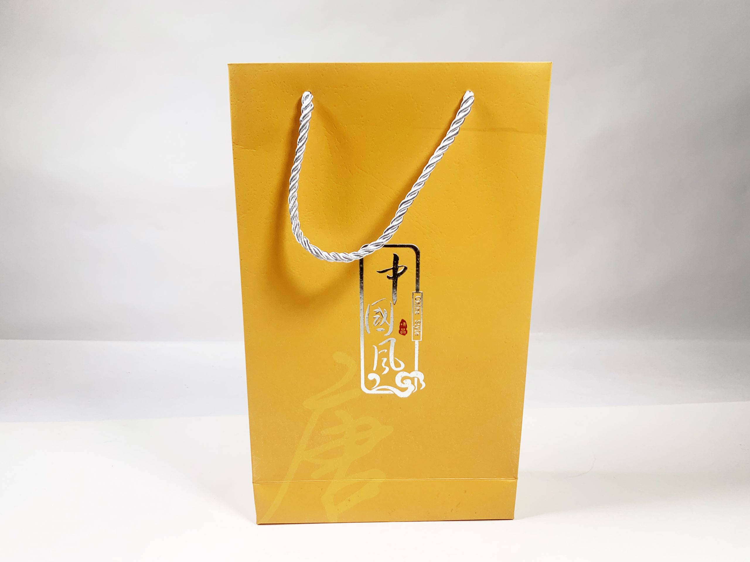 材质:250g白卡 烫银 白色手提绳 案例名称:中国风手提袋 类型:手提袋