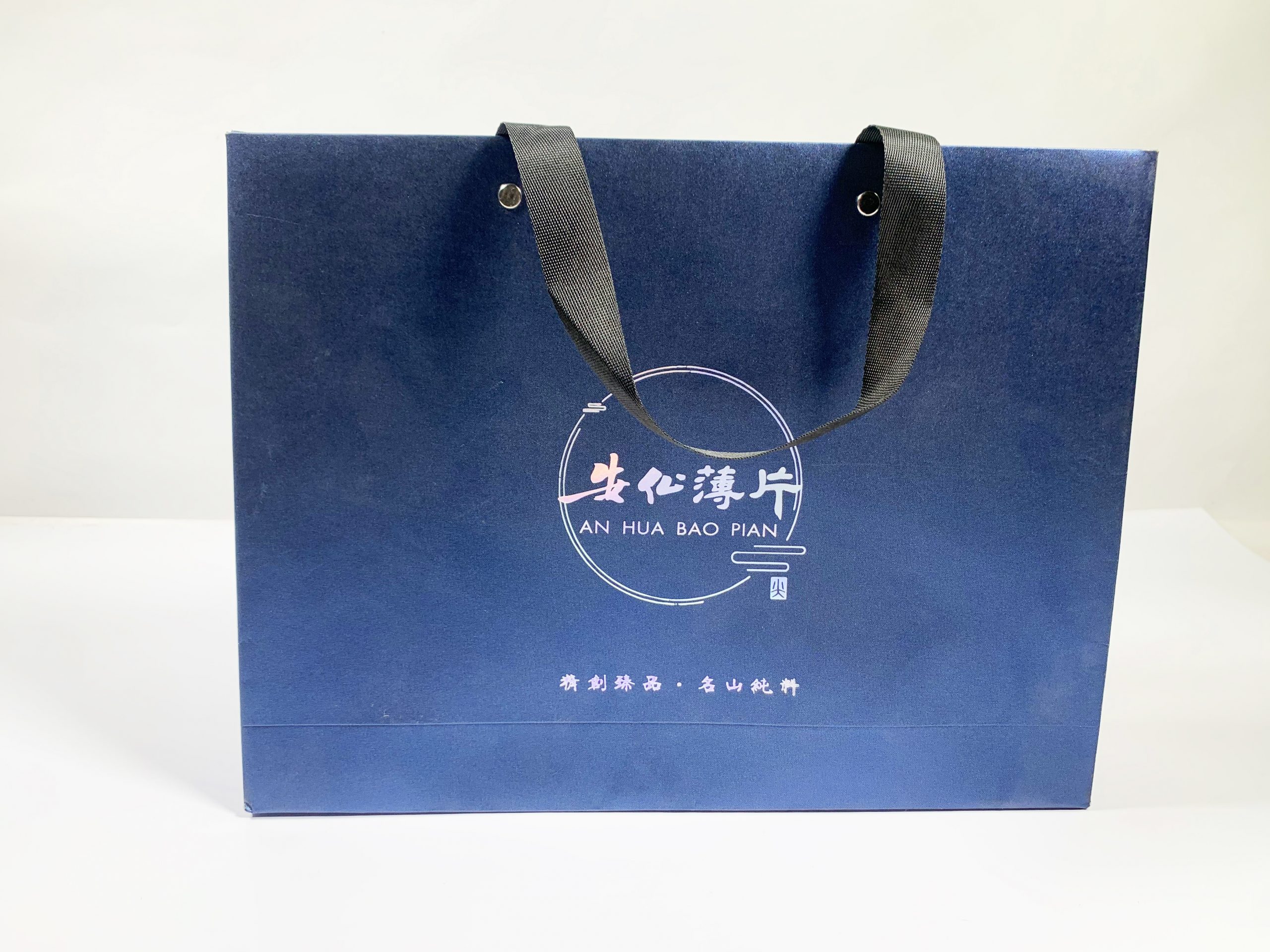 案例名称:安化薄片手提袋 类型:手提袋 材质:230g特种纸+烫银